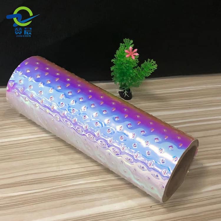 產品參數: 產品名稱:TPU棱型半圓型幻彩膜 產品品牌:贊晨 顏色:透明幻彩/各種彩色幻彩 材質:TPU 產品規格:0.3mm*1.37m*30Y 燙印溫度:110度左右 單位:Y 是...